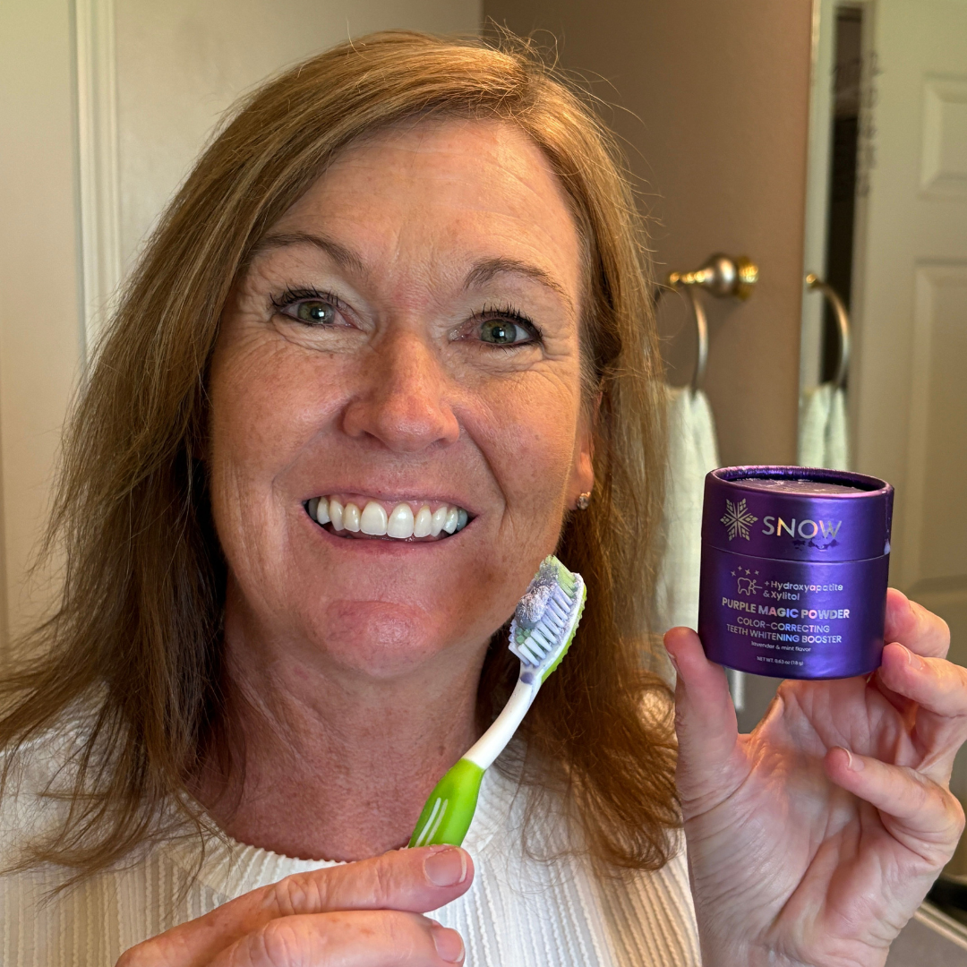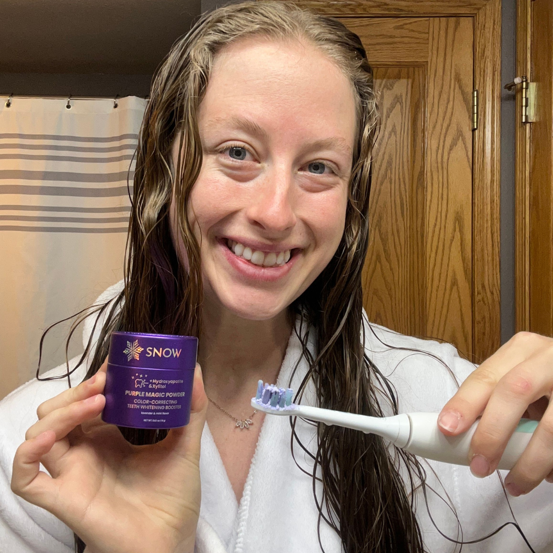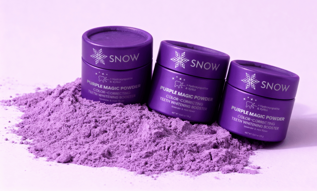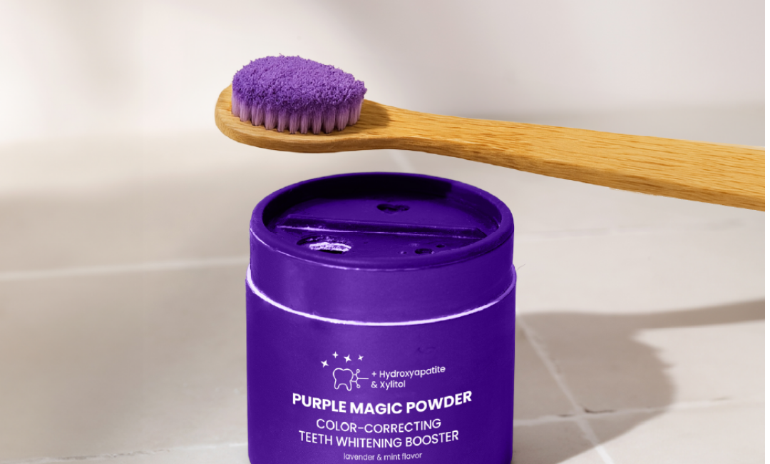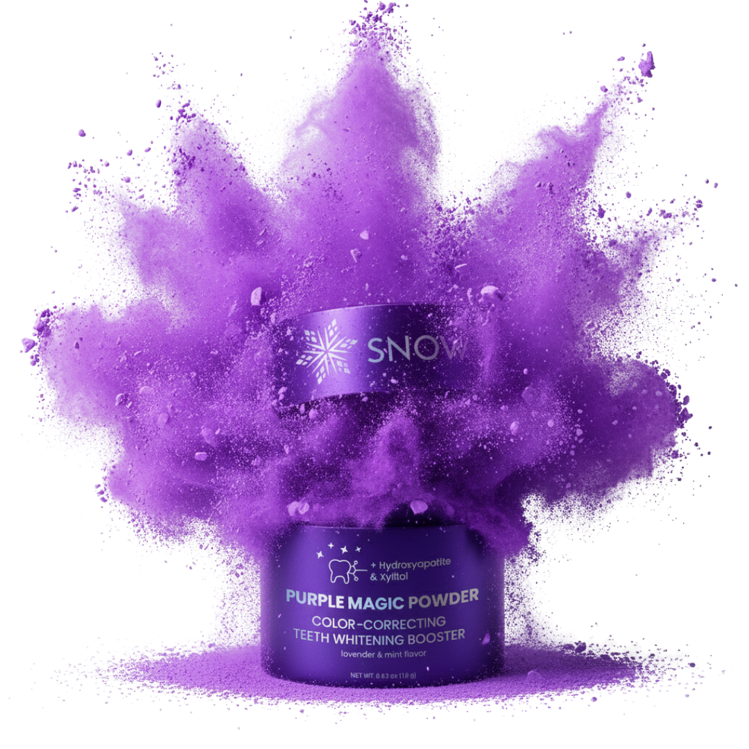 Sprinkle purple powder on any toothpaste. Brush normally. See instant brightening. Feel zero sensitivity.